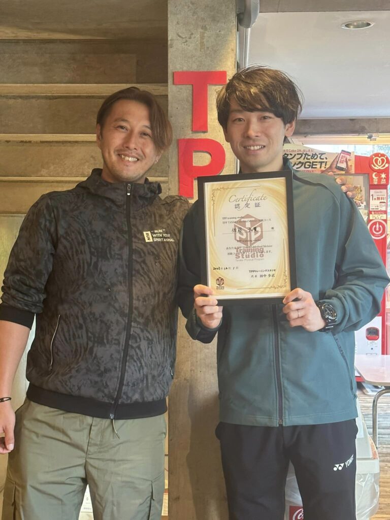 ③2ヶ月(約8週間)受講が終了しましたら、皆様のご都合の良い日に1日だけ東京都板橋区にありますTPPトレーニングスタジオにて実技指導を確認させて頂き、認定書を送らせて頂きます。