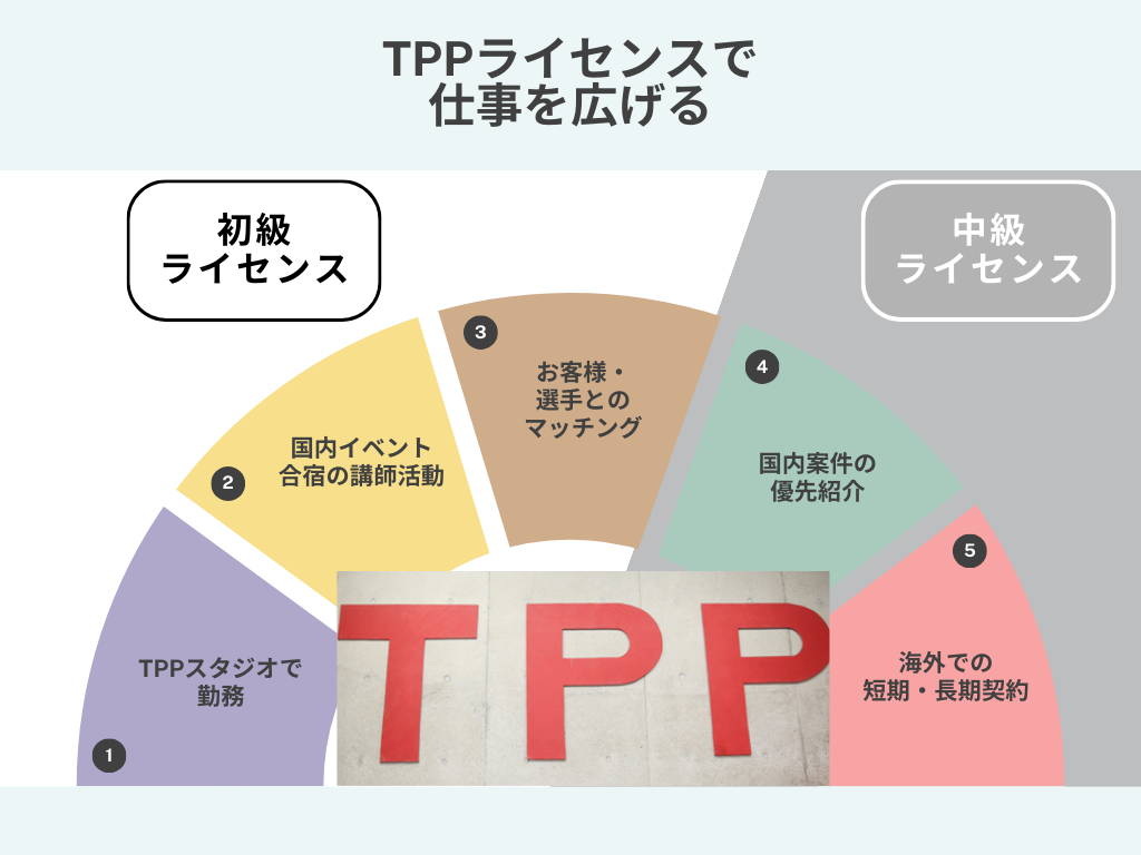 TPPライセンスは、初級・中級・上級の3コースがあります。